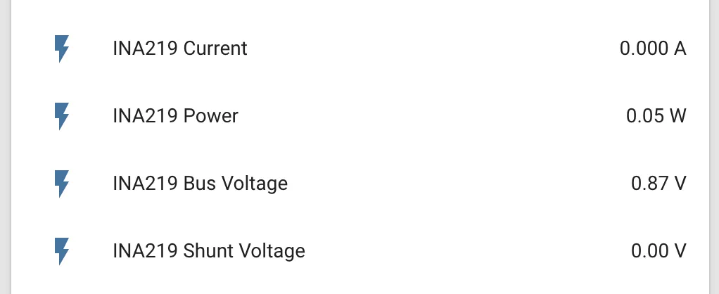 # Example configuration entrysensor: - platform: ina219 address: 0x40 shunt_resistance: 0.1 ohm current: name: "INA219 Current" power: name: "INA219 Power" bus_voltage: name: "INA219 Bus Voltage" shunt_voltage: name: "INA219 Shunt Voltage" max_voltage: 32.0V max_current: 3.2A update_interval: 60sConfiguration variables
