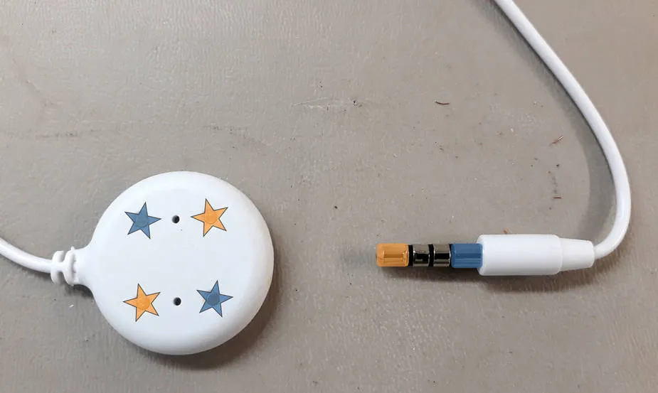 Since the probe comes with an integrated 3.5mm male plug, a 3.5mm female jack has been connected to the Grove port to allow easy probe replacement in the future. Orange connects to orange, blue connects to blue. The pads on the opposite side of the probe are internally-connected identically to the front. The two middle rings on the 3.5mm jack are unused. There is no polarity — simply connect one terminal (orange or blue) to Grove GND, and the other to Grove G33.
